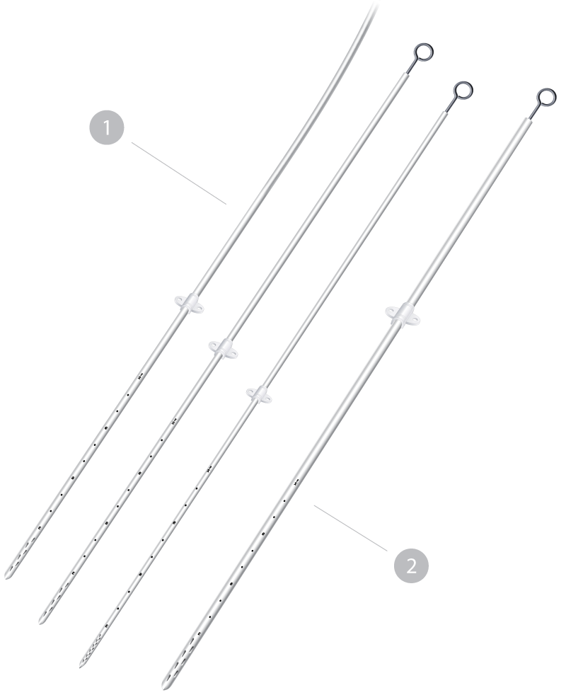 - 2 - Cateter para Casos Hemorrágicos Em silicone transparente com filete radiopaco. O diâmetro interno de 2,1 mm proporciona um ganho de 72% no lúmen de drenagem (quando comparado ao modelo Adulto), tornando o cateter especial para drenagem de líquor com conteúdo hemorrágico